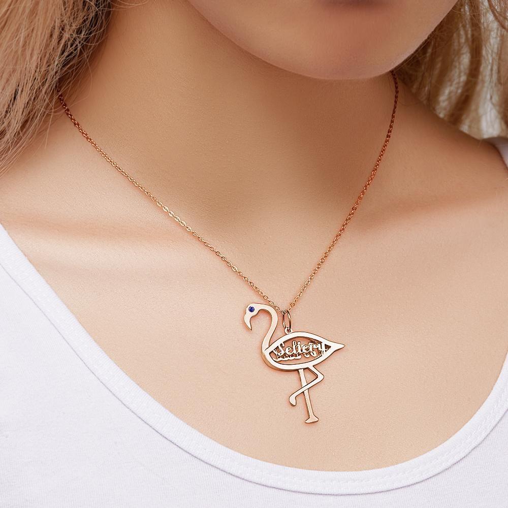 53% RABATTBenutzerdefinierter Name Birthstone Halskette Flamingo Anhänger Geburtstagsgeschenke Rose Gold Plated Silver -