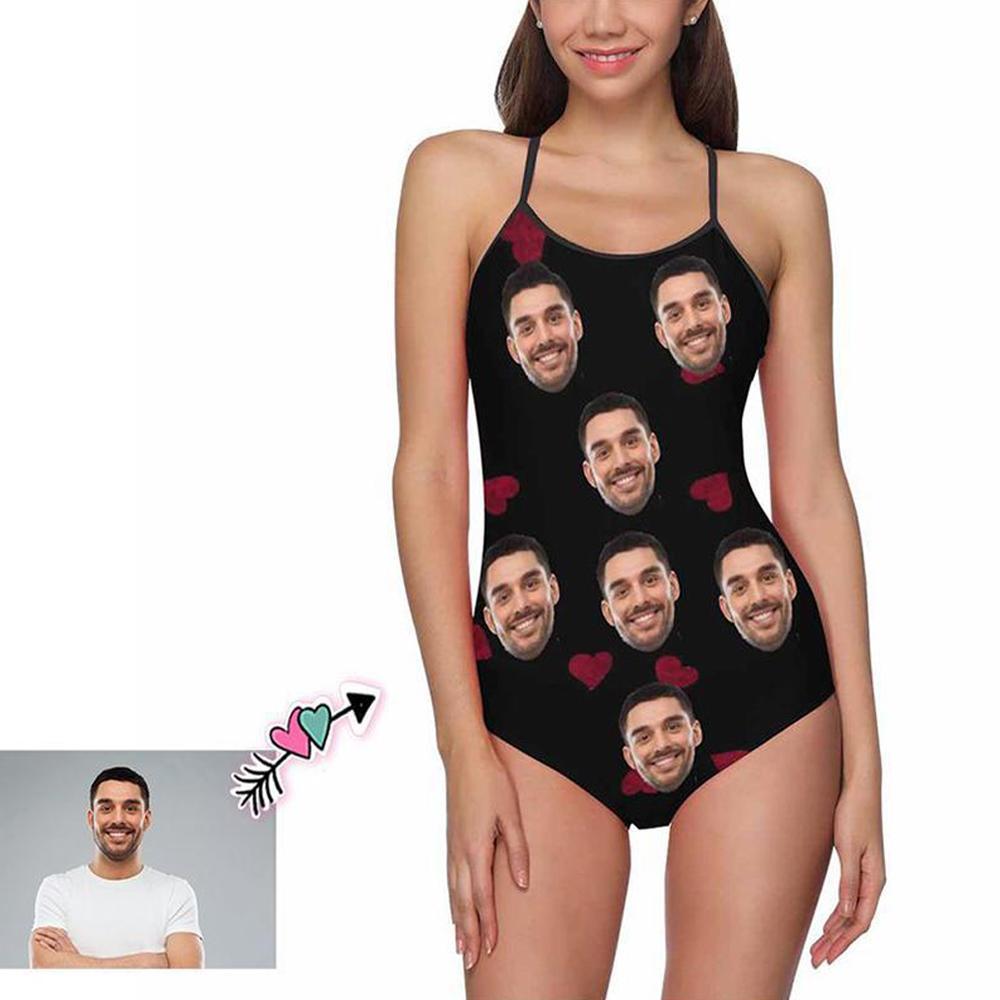 60% RABATTBenutzerdefiniertes Gesicht Badebekleidung Liebesherz Damen Unterhose Ein Stück Badeanzug -