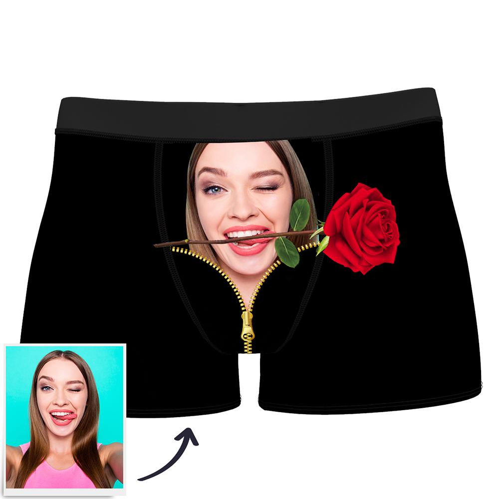 50% RABATTBenutzerdefinierte Foto Boxer, Liebhaber Gesicht mit Rose Blume Unterwäsche Freundliches Gesicht lustiger Stil - Herren -