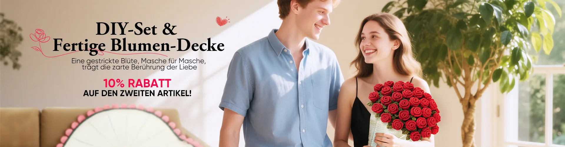 28% RABATTHandgestrickte Rosendecke, Diy-set Und Fertiges Geschenk Zum Muttertag, Valentinstag -