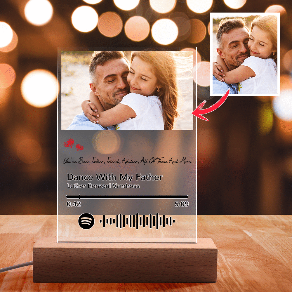 64% RABATTScanbare spotify code-Nachtlicht-Fotogravur-Acryl-Geschenke für den Vatertag -
