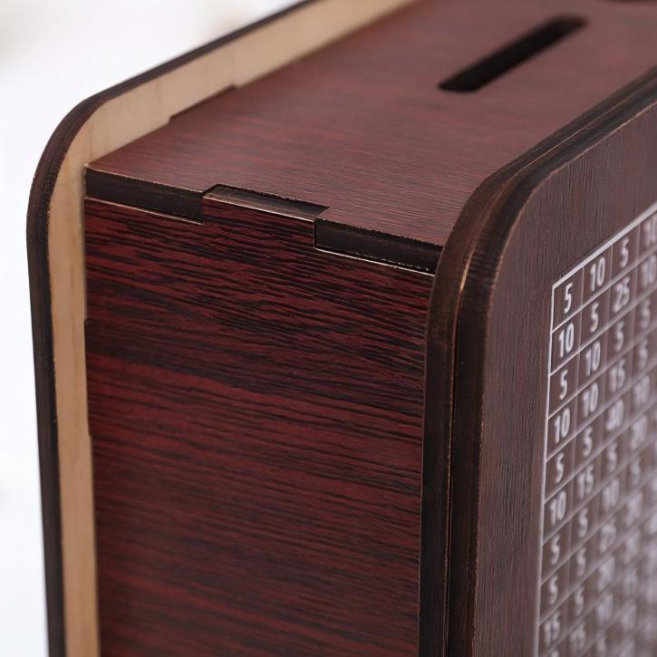 Die Cash Vault Spardose aus Holz ist ein hochwertiges Sparschwein, das Kindern das Sparen spielerisch näherbringt. Gefertigt aus robustem Holz mit einer klaren, zeitlosen Oberfläche, verwandelt diese elegante Spardose alltägliche Münzen in eine spannende Sparherausforderung. Jedes Set enthält eine wiederverwendbare Spardose und einen praktischen Stift zum Beschriften oder Personalisieren. So können Kinder ihre Fortschritte leicht verfolgen und motiviert bleiben. Erhältlich in US-Dollar- und Euro-Ausführung, ist es perfekt für Familienziele, Schulprojekte oder als Geschenk für junge Sparer.