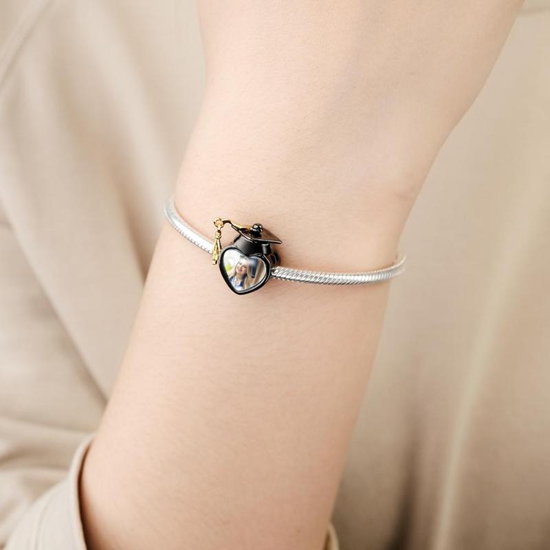 Herzlichen Glückwunsch zum Abschluss! Beenden Sie das Schulleben mit komplexen Gefühlen: aufgeregt, zögerlich, sehnsüchtig. Die Foto-Charm-Perle „Akademische Kappe“ repräsentiert Ihren Zielabschluss, gefertigt aus Sterlingsilber, mit Quastendetails, exquisit und lebendig. Bestes Geschenk bei der Abschlussfeier. Wählen Sie ein zufriedenstellendes Foto und fügen Sie es ein, um eine perfekte Erinnerung an die Vergangenheit zu schaffen und an eine glänzende Zukunft zu glauben.