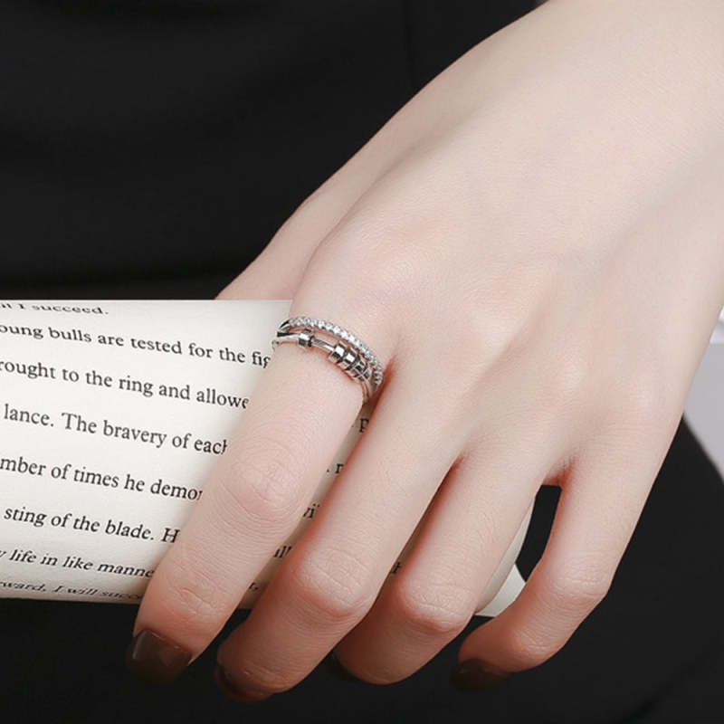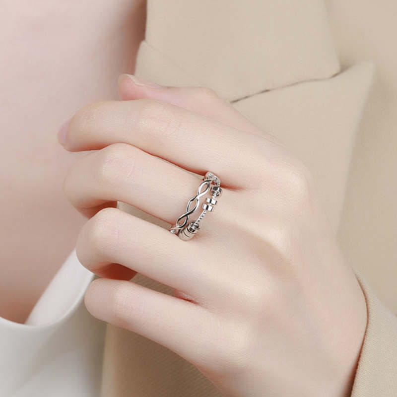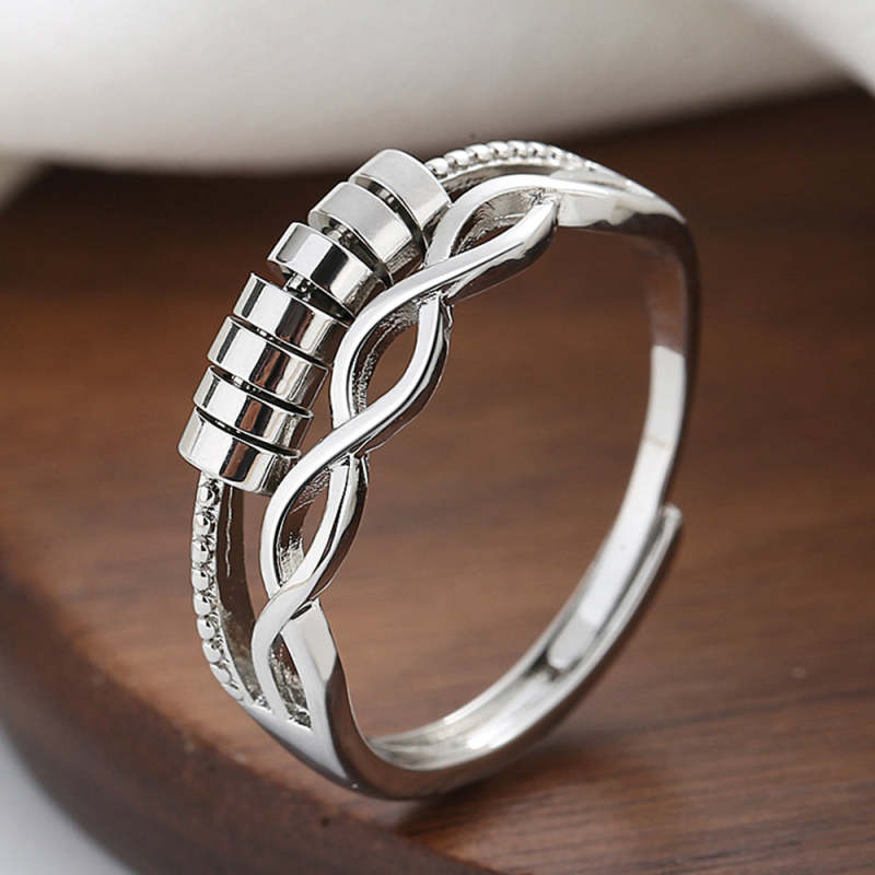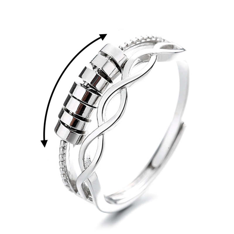 Wunderschöner dekorativer Bandring, auch ein geheimer Fidget-Ring, der Ihnen hilft, Ihre Hände zu beschäftigen und die Gewohnheit aufzugeben, Nägel zu pflücken oder zu kauen. Der magische Sorgenring sorgt für ein viel längeres und gleichmäßiges Drehen und lindert Stress und soziale Spannungen auf Partys oder Zusammenkünften.