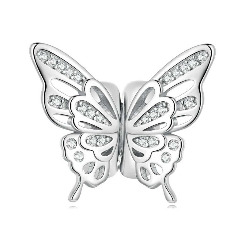 Wunderschöner Schmetterlings-Stopper-Charm, Spacer-Charm, Silber