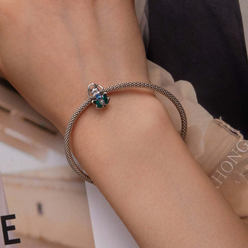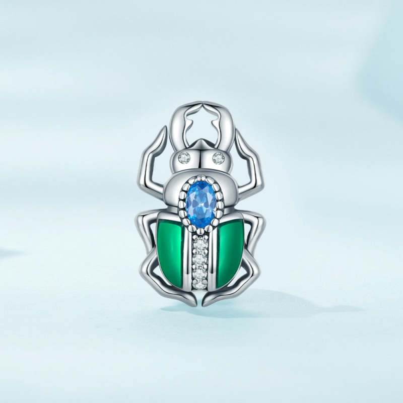 Käfer-Charm mit blauem Zirkon, Silber