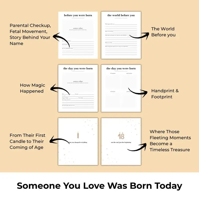 Das Geburtstagsbuch-Andenken-Tagebuch ist Ihr neuer bester Freund, wenn es darum geht, all die Magie einzufangen. Dieses elegante Tagebuch wurde speziell für vielbeschäftigte frischgebackene Eltern entwickelt und ist mehr als nur ein Buch – es ist ein herzlicher Brief an Ihr Kind, der noch viele Jahre in Erinnerung bleiben wird.