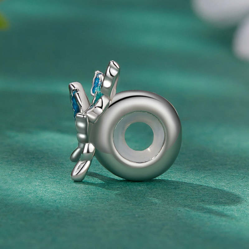 Blauer Schmetterlings-Stopper-Charm, Spacer-Charm, Silber