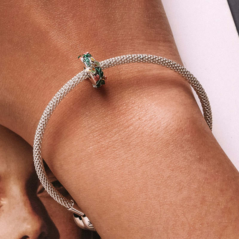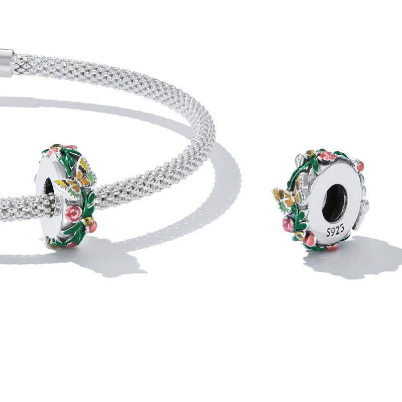 Schmetterlingsblüten Stopper Charm Spacer Charm Silber
