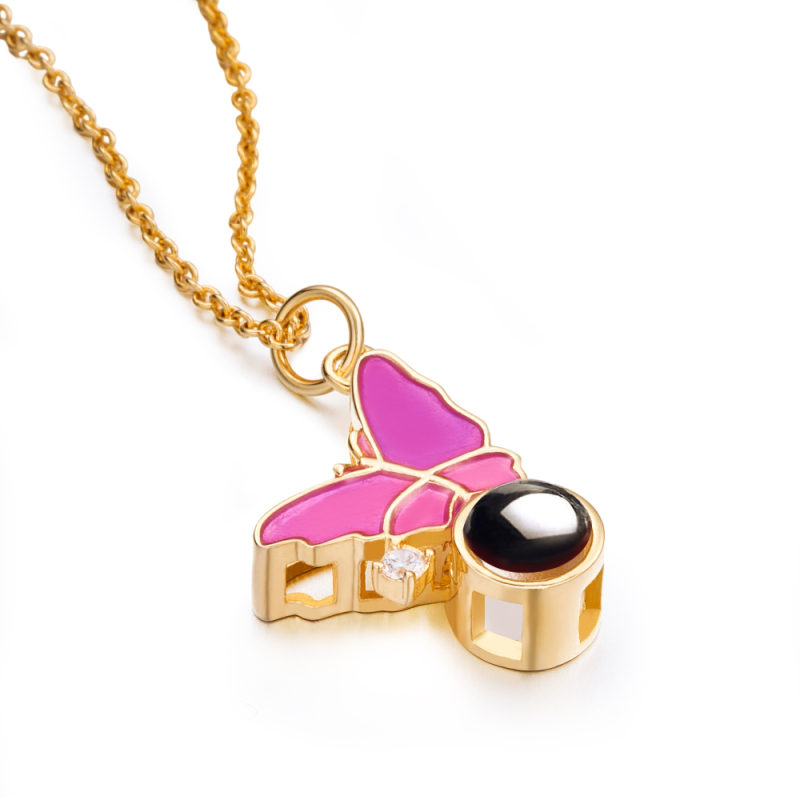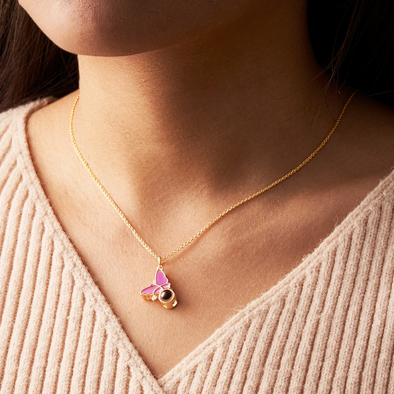 Diese personalisierte Halskette mit Schmetterlingsprojektion ist ein trendiges und exquisites Erinnerungsschmuckstück. Es ist aus hochwertigen Materialien gefertigt, zeigt die einzigartige Schmetterlingsform und bietet eine faszinierende Möglichkeit, ein personalisiertes Bild im Inneren des Anhängers zu präsentieren. Diese Halskette ist in den Ausführungen Silber, Gold und Roségold erhältlich und ein entzückendes und aufmerksames Geschenk für Ihren besten Freund oder geliebten Menschen.