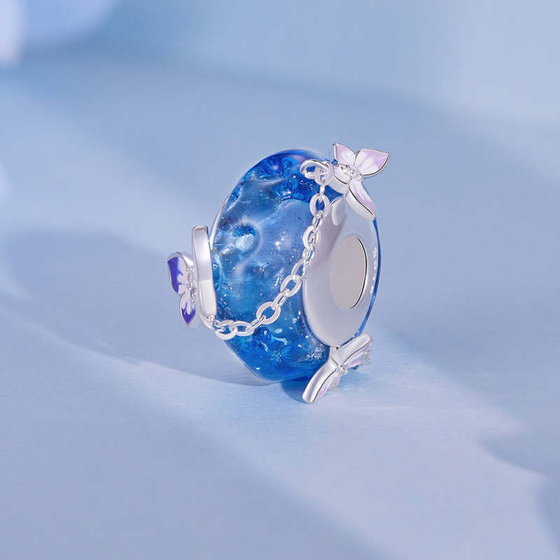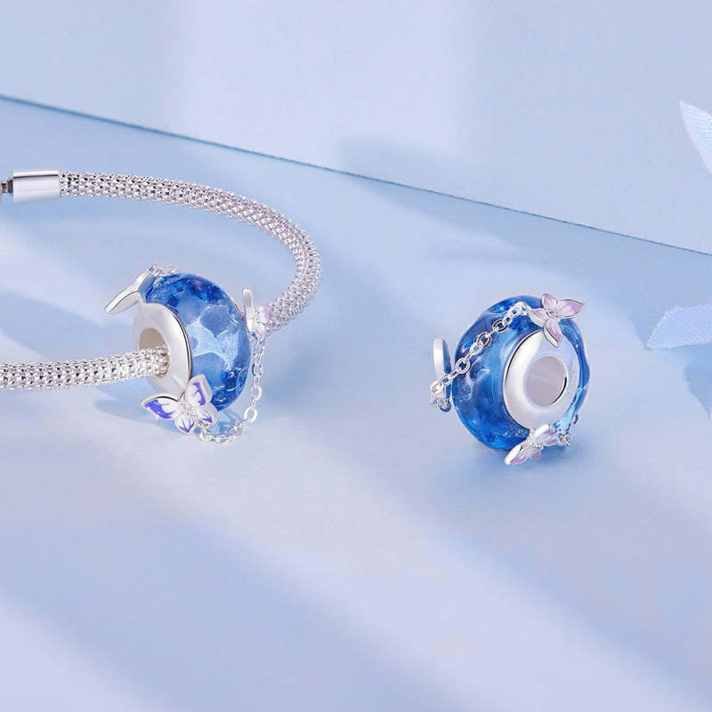 Blauer Charm-Anhänger mit Schmetterlingsquaste aus Silber