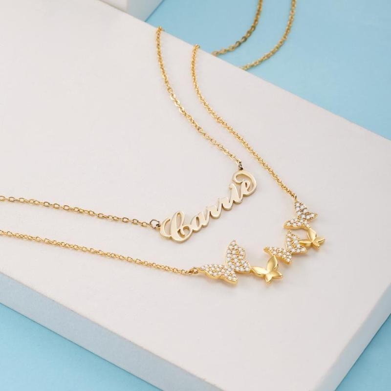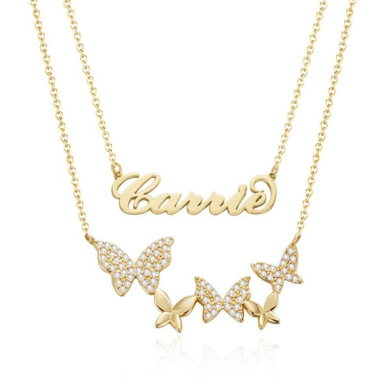 Namenskette Carrie Stil Name Halskette mit Schmetterling Anhänger Halskette für Freundin Geschenke
