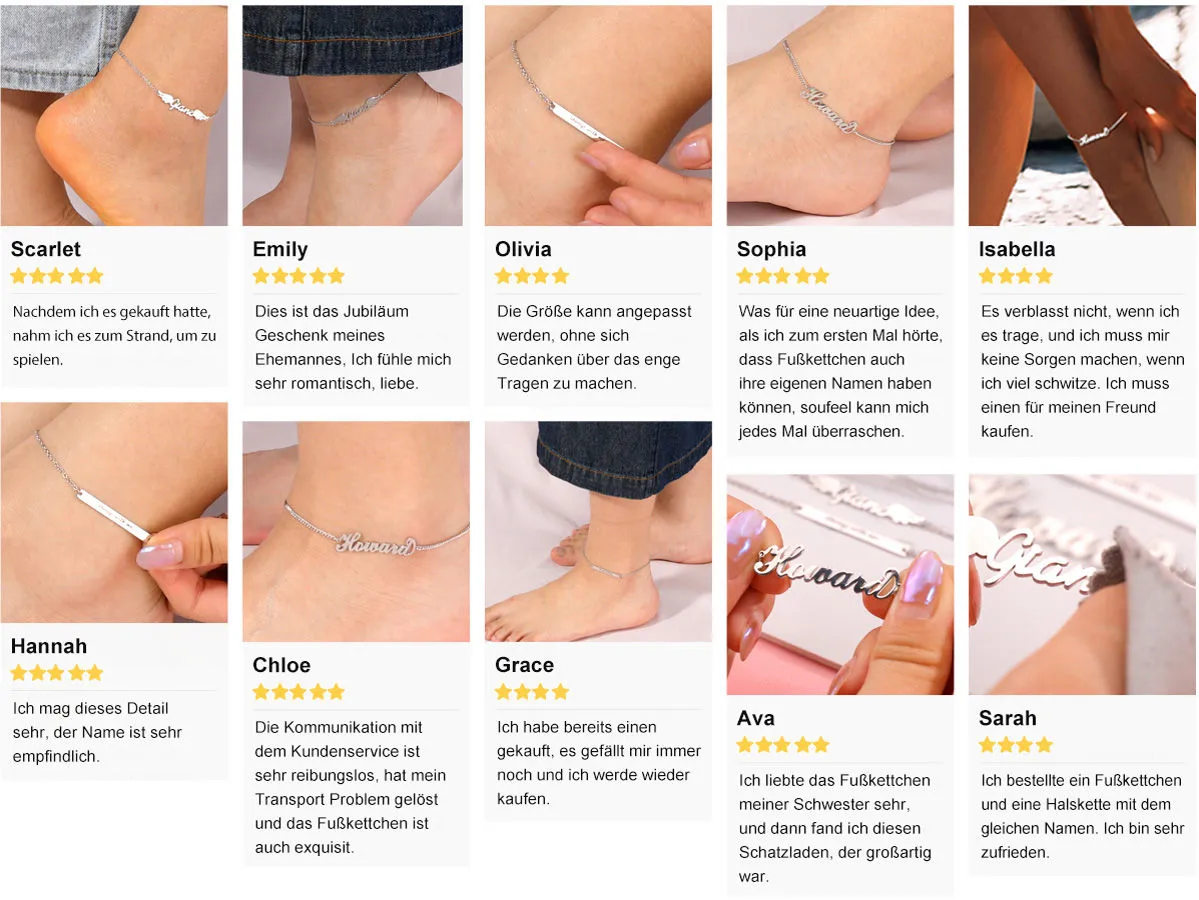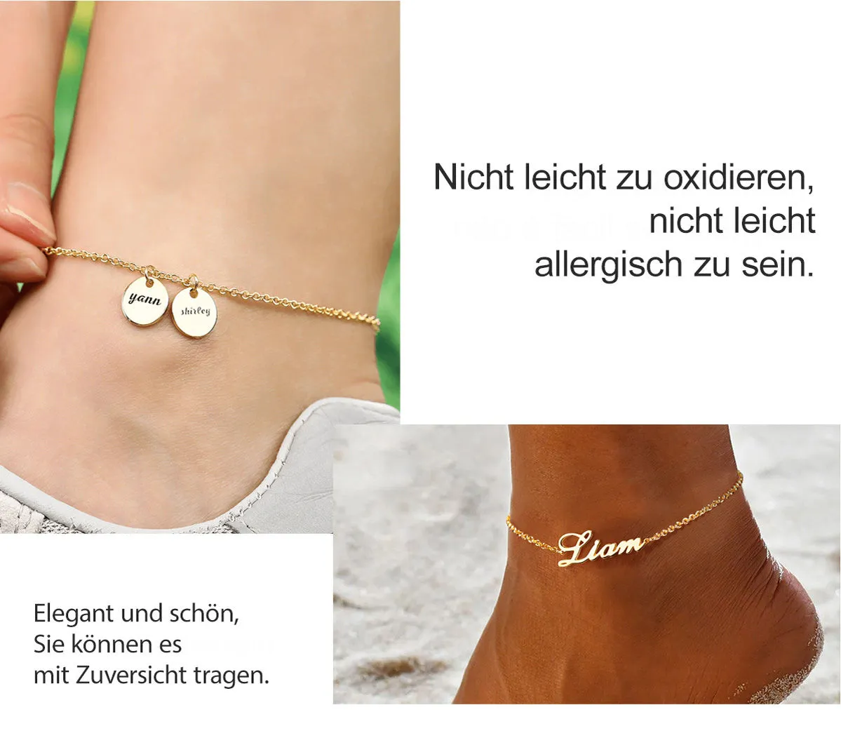 Kinder Name Fußkettchen mit Platin überzogen - Länge Verstellbar