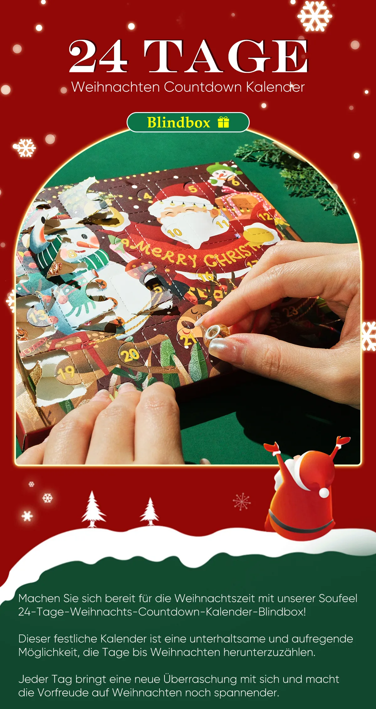 Erleben Sie den Nervenkitzel der Weihnachtszeit mit unserer Soufeel-Adventskalender-Weihnachts-Countdown-Kalender-Blindbox. Mit 24 einzigartigen Überraschungen ist es das perfekte Weihnachtsgeschenk für Kinder und Erwachsene.Schmuck-Adventskalender