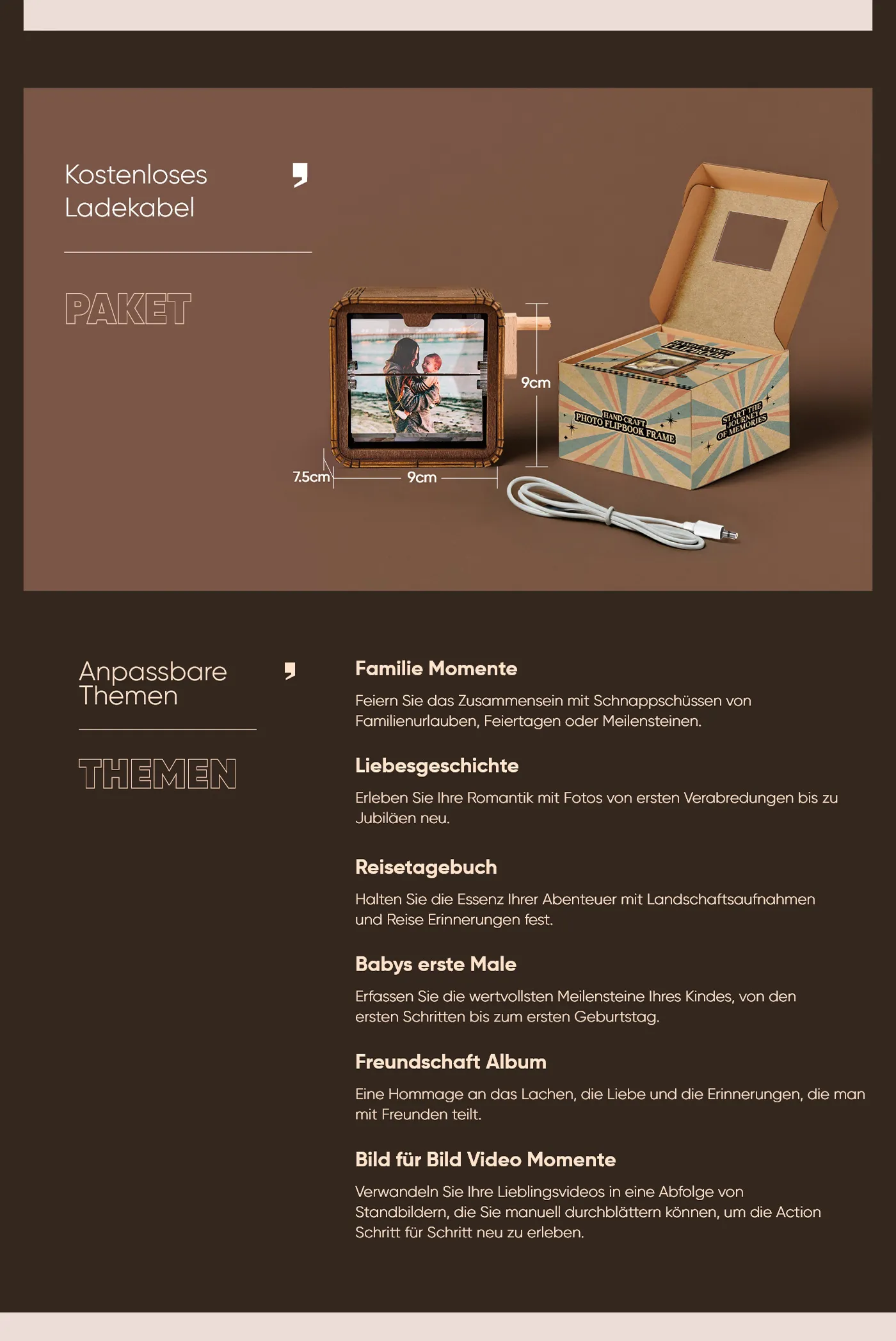 Feiern und bewahren Sie die schönsten Momente des Lebens mit unserem beleuchteten Handkurbel-Foto-Flipbook-Rahmen. Dieses exquisite Andenken ist mehr als nur ein Album; es ist ein individuell gestaltbarer Schatz, der das Wachstum und die Meilensteine Ihrer Familie hervorhebt.