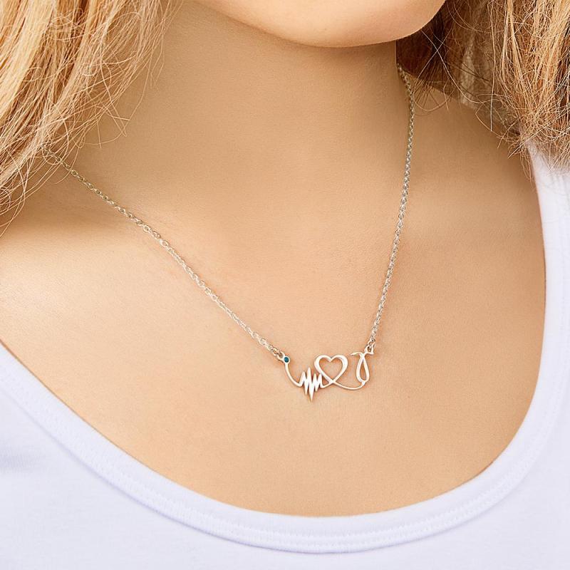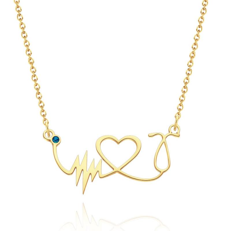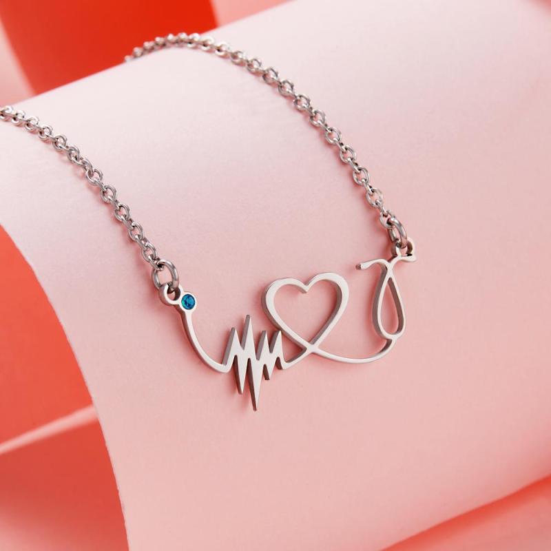 Benutzerdefinierte Birthstone Halskette Herzschlag Gedenkgeschenke
