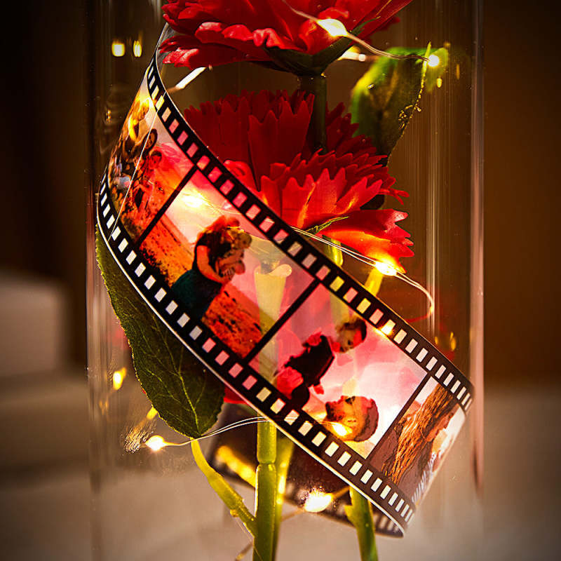 Rote Nelken symbolisieren Anbetung, leidenschaftliche Liebe, das Ausdrücken von Gedanken und wünschen Müttern ein langes und gesundes Leben. Es kann auch als elegantes Wohnaccessoire für Ihr Esszimmerregal verwendet werden! Sie können Folie in Rosen stecken und aus 'wertvollen Erinnerungen' die schönsten Andenken machen. 5-20 Bilder können angepasst werden, bitte laden Sie ein rechteckiges Bild hoch, sonst ist es einfach, den Text oder Hintergrund beim Anpassen abzuschneiden sorgfältig seine Nelken in der Glasabdeckung platziert.