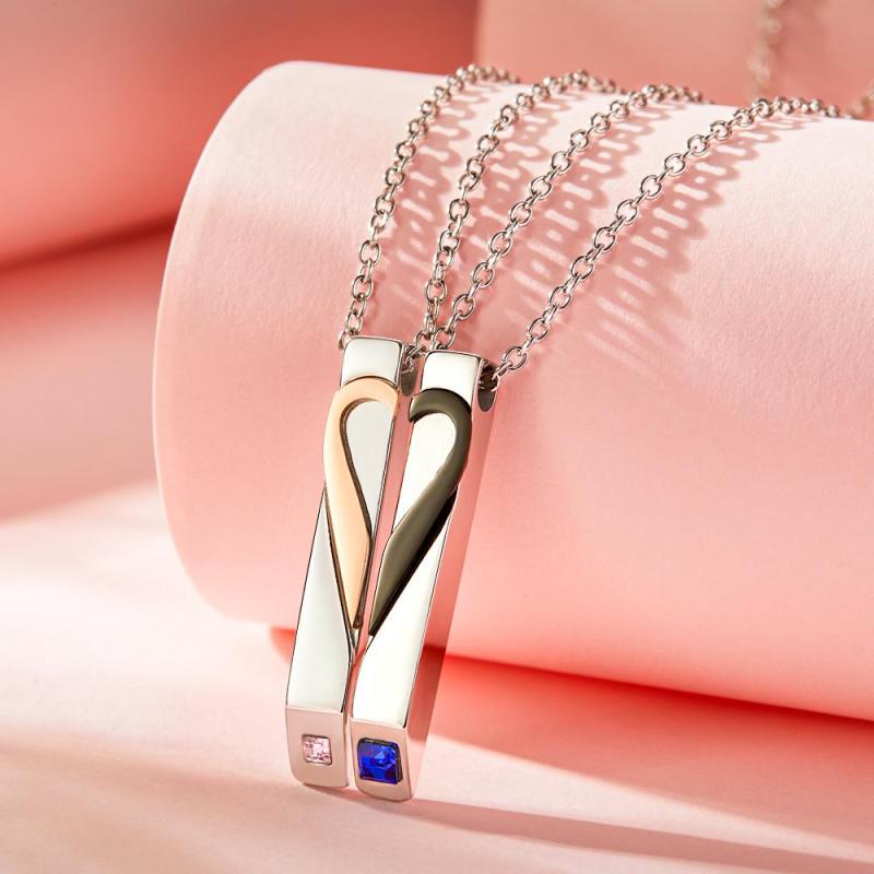 Individuelle Diamant-Halskette in Herzform als Paar-Halskette als Geschenk für sie. Dies ist eine Halskette mit wechselnden Diamanten für ein Paar, die separat getragen werden kann. Sie können die Farbe des Diamanten nach Belieben anpassen. Sie können die Farbe des Diamanten auswählen, die Sie anpassen möchten, und ihn Ihrem Liebhaber geben. Glauben Sie mir, Ihr Liebhaber wird sich sehr freuen, wenn er eine solche Halskette erhält.
