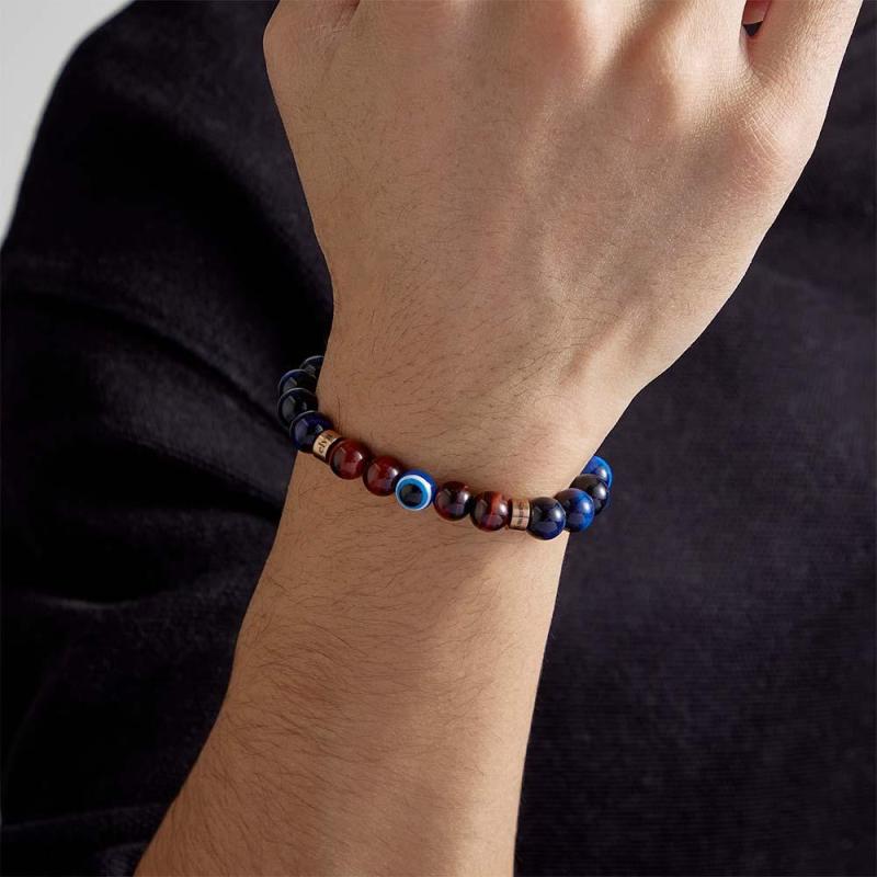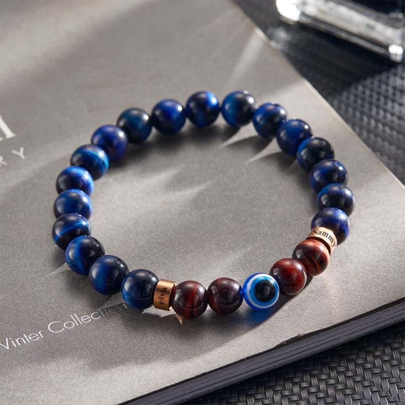 Individuell Graviertes Amulett-armband Mit Bösem Blick, Blaues Und Rotes Tigerauge-perlenarmband Für Männer
