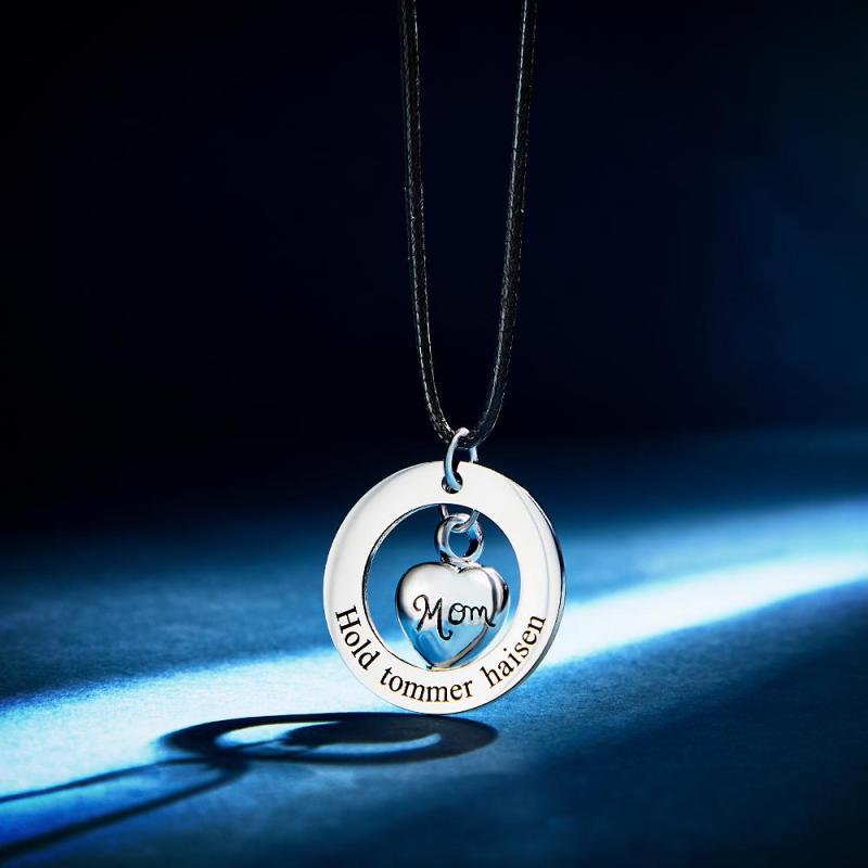 Individuell geschnitzte Halskette Pfirsichherz Halskette Gedenkserie Urne. Diese Halskette hat einen großen Ringanhänger mit einer kleinen Schachtel mit Pfirsichherzen in der Mitte. Diese kleine Box kann die Asche des geliebten Menschen aufnehmen, an den Sie sich erinnern möchten, damit er immer bei Ihnen sein kann. Gleichzeitig können Sie auch den Text anpassen und seinen Namen in die Halskette eingravieren, um ihn zu gedenken.