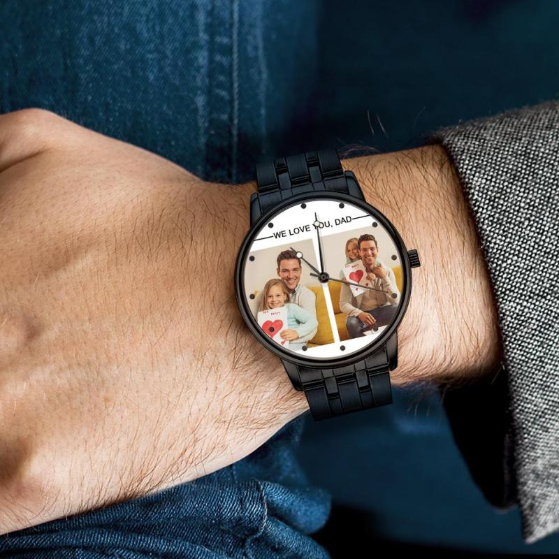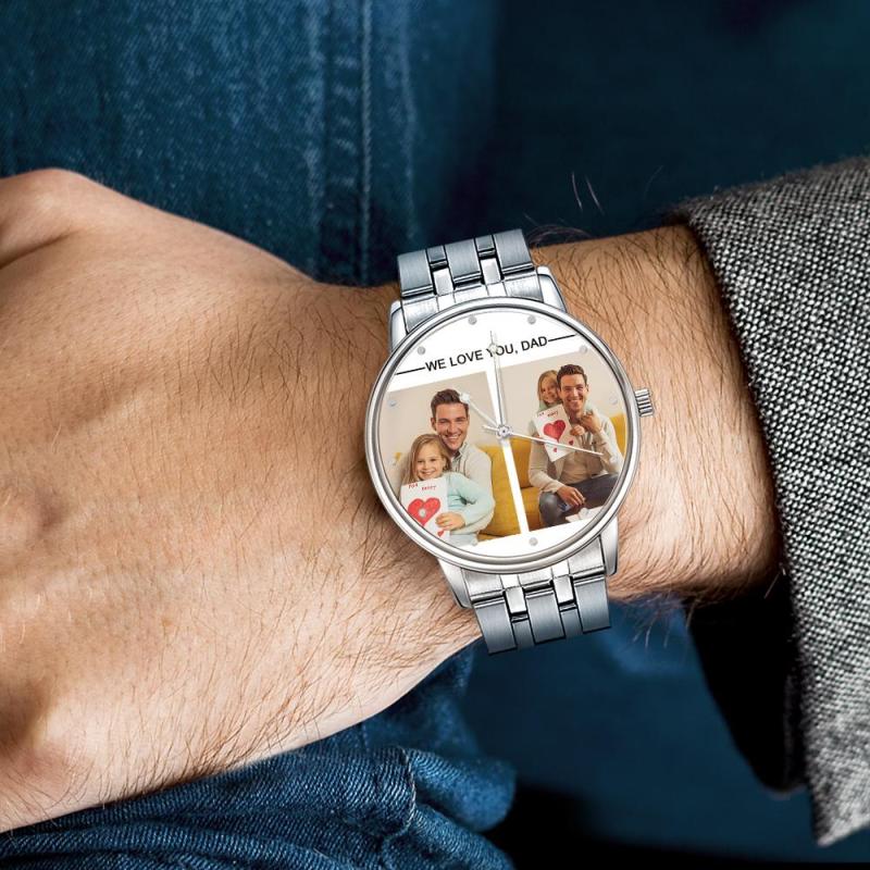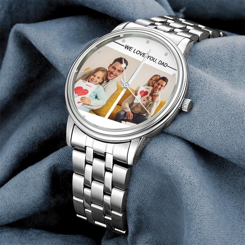 Individuell Gravierte Fotouhr, Personalisierte Gravurbilduhr, Vatertagsgeschenke Für Papa