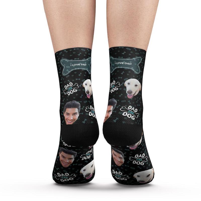 Benutzerdefinierte Gesicht Socken Hund und Papa mit Ihrem Text