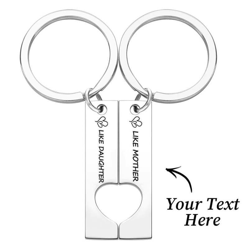 Um den Schlüsselbund anzupassen, können Sie einen beliebigen Text eingeben. Die beiden Schlüsselanhänger sind ein Paar, Sie können es Ihrer wichtigsten Person schenken. Zwei zusammengefügte Schlüsselanhänger haben die Form eines Herzens und repräsentieren Ihre Liebe zueinander.