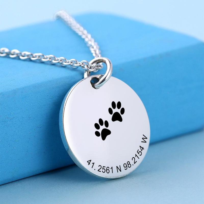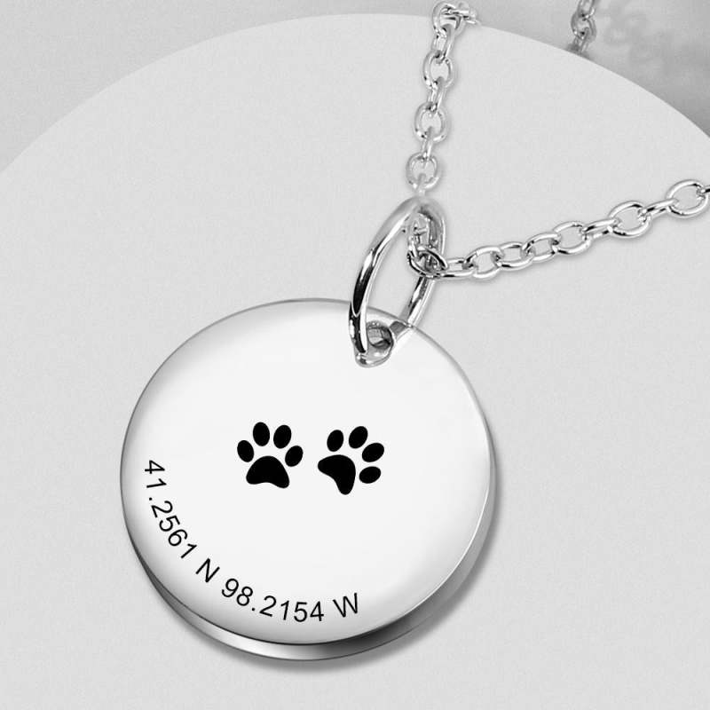 Benutzerdefinierte Breiten- Und Längengrad-halskette Münzhalskette Mit Haustier-fußabdrücken