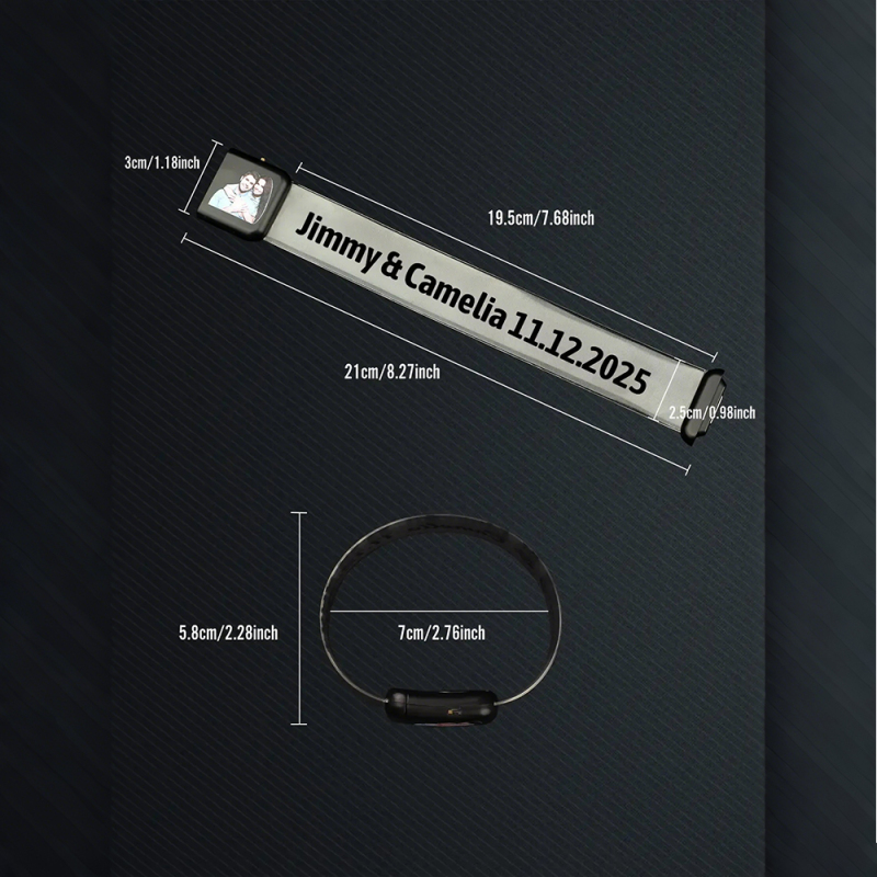 Feiern Sie Ihre besonderen Momente mit diesem personalisierten Herrenarmband mit Fotogravur und spezieller Leuchtfunktion. Das Armband ist mit einer Fotogravur versehen, die Ihre schönsten Erinnerungen festhält und es zu einem wahrhaft persönlichen Accessoire macht. Ideal für Jahrestage, Geburtstage, Valentinstag oder andere besondere Anlässe. Es ist mehr als nur ein Geschenk, es ist eine ständige Erinnerung an Liebe und Verbundenheit, die Sie jeden Tag tragen können.