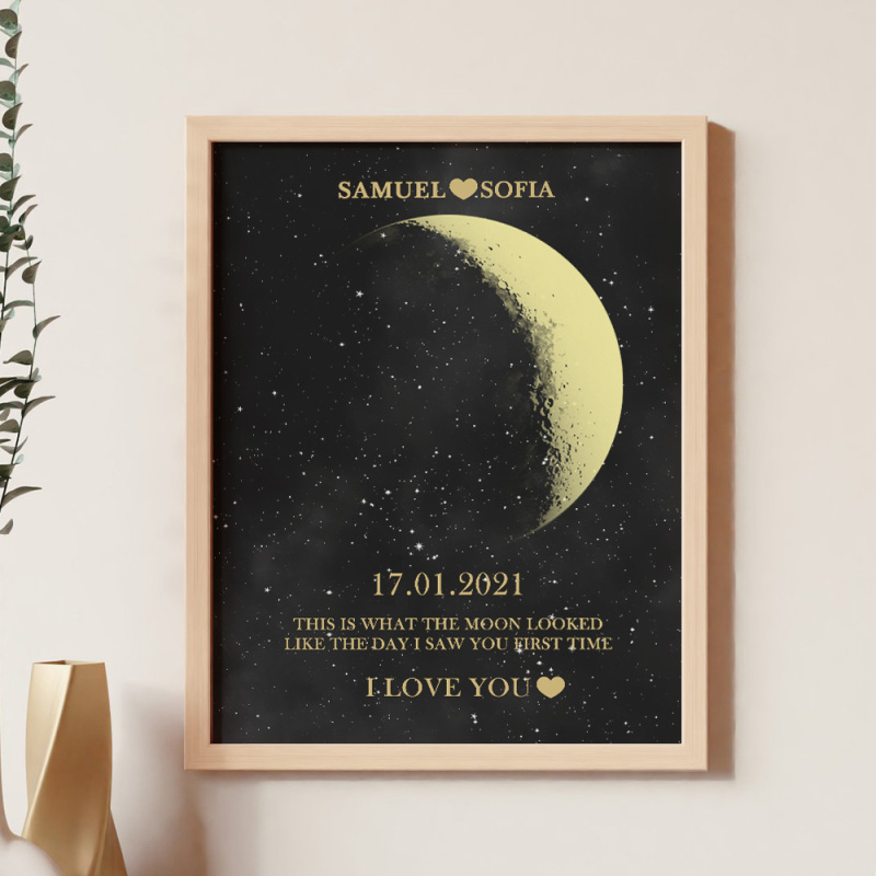 Benutzerdefinierte Mondphasen-golddruckrahmen-geschenke Für Geburtstag Und Jubiläum
