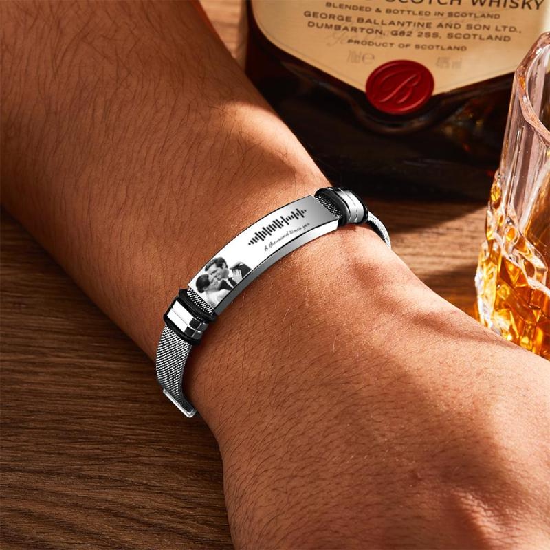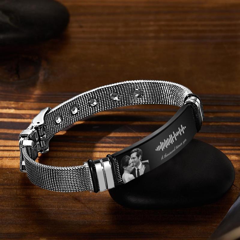 Benutzerdefiniertes Musik-code-armband Mit Ihrem Foto Perfektes Geschenk Für Den Hochzeitstag Im Juni Und Juli