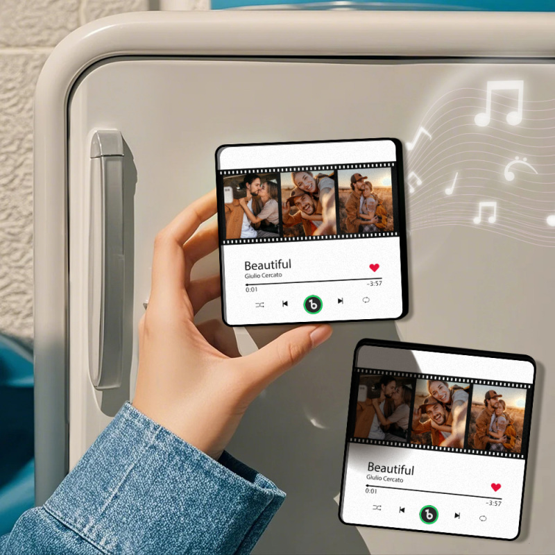 Benutzerdefinierter Musik-kühlschrankmagnet, Neues 4.0-upgrade Im Filmstil, Bunter Rahmen, Personalisierter 3-fotoalbum-kühlschrankmagnet, Musikwand-fotoaufkleber, Musikbewegung, Die Abgespielt Werden Kann, Weihnachtsgeschenk