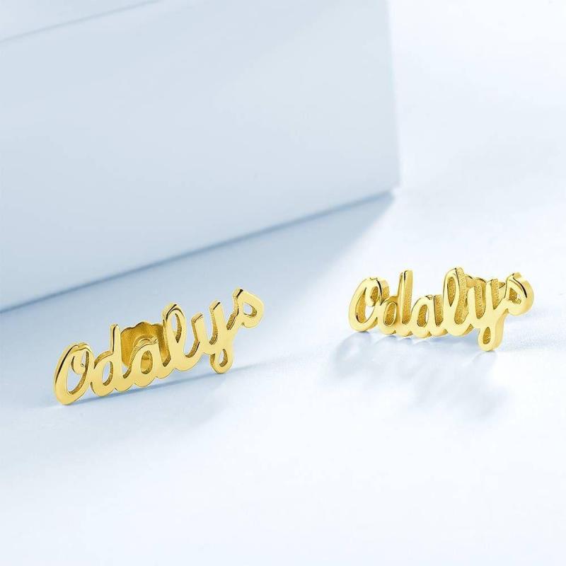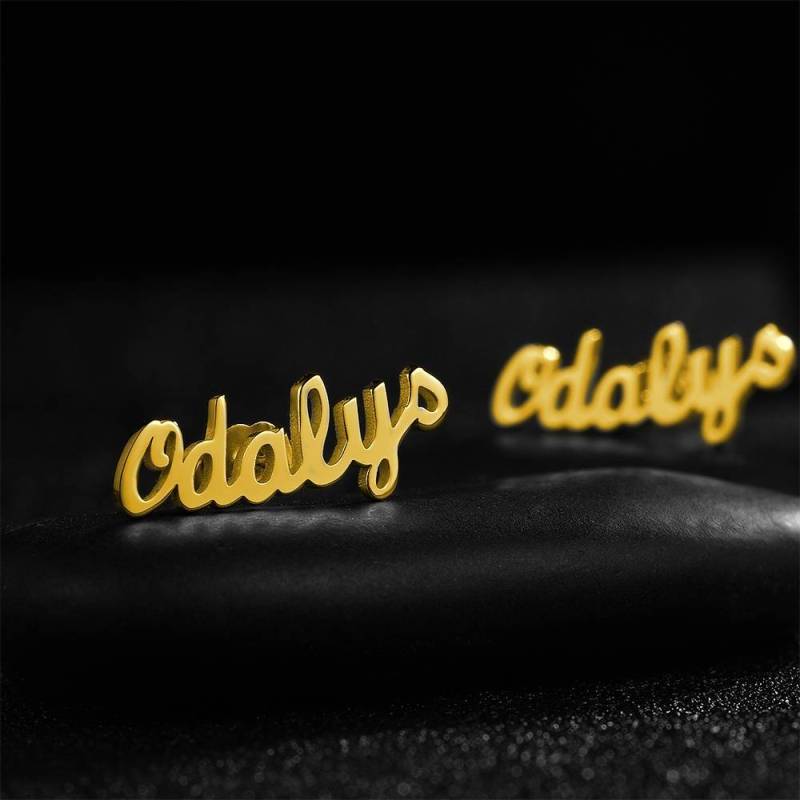 Kundenspezifische Name Ohrringe, Name Ohrstecker 14K Vergoldet - Silber
