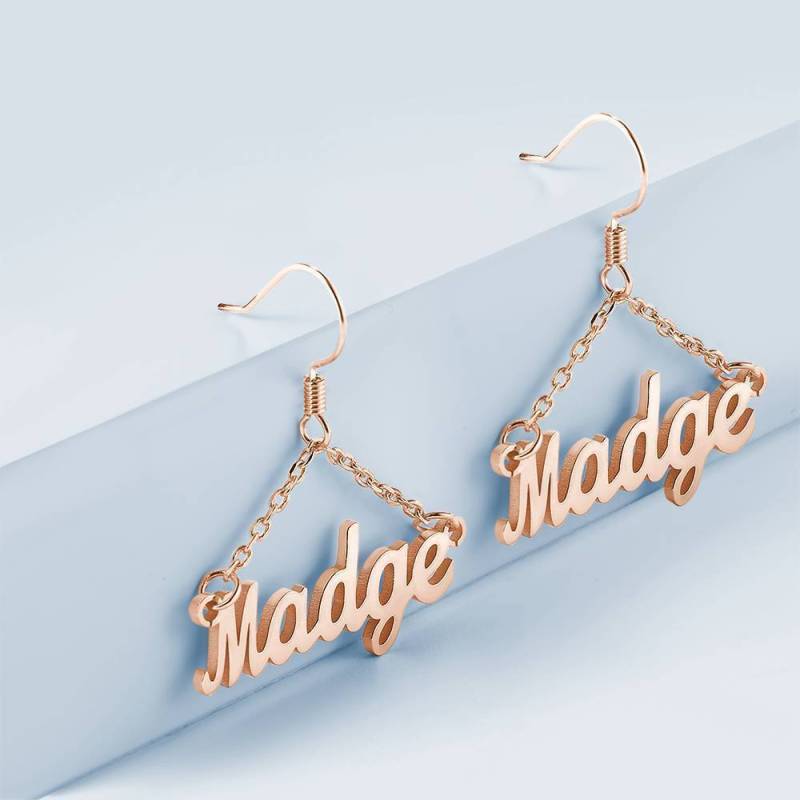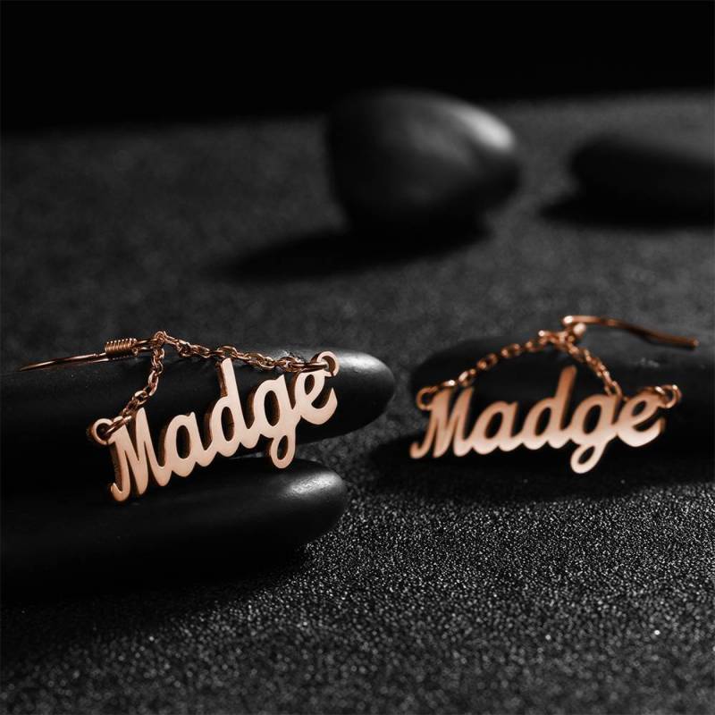 Kundenspezifische Name Ohrringe Einzigartiges Geschenk Rose Vergoldet - Silber