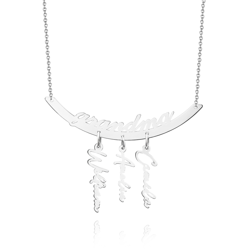 Feiern Sie Ihre Lieben mit dieser personalisierten Familienkette. Sie kann mit 1 bis 7 Namensanhängern personalisiert werden und ist ein herzliches Geschenk für Oma oder zum Muttertag. Es wurde gefertigt, um die einzigartige Verbundenheit Ihrer Familie zu unterstreichen und ist ein perfektes Andenken für jeden Anlass.