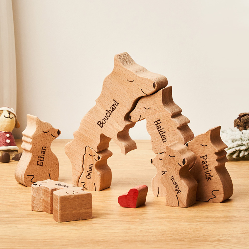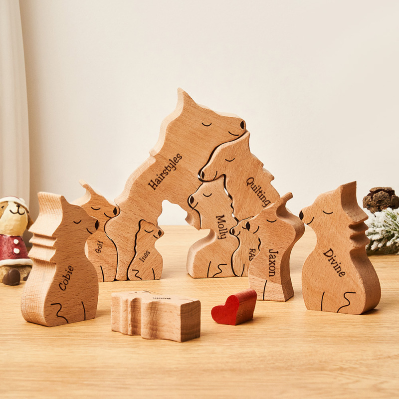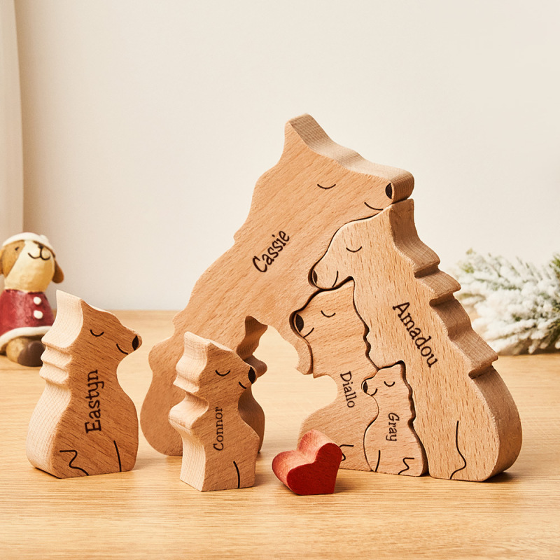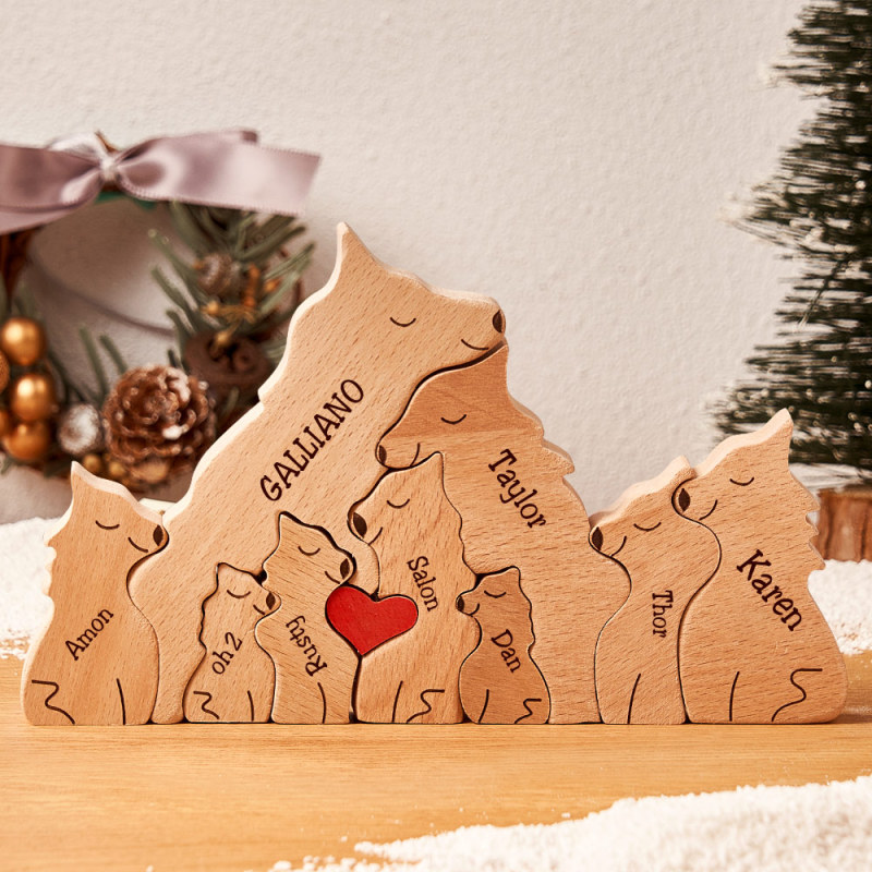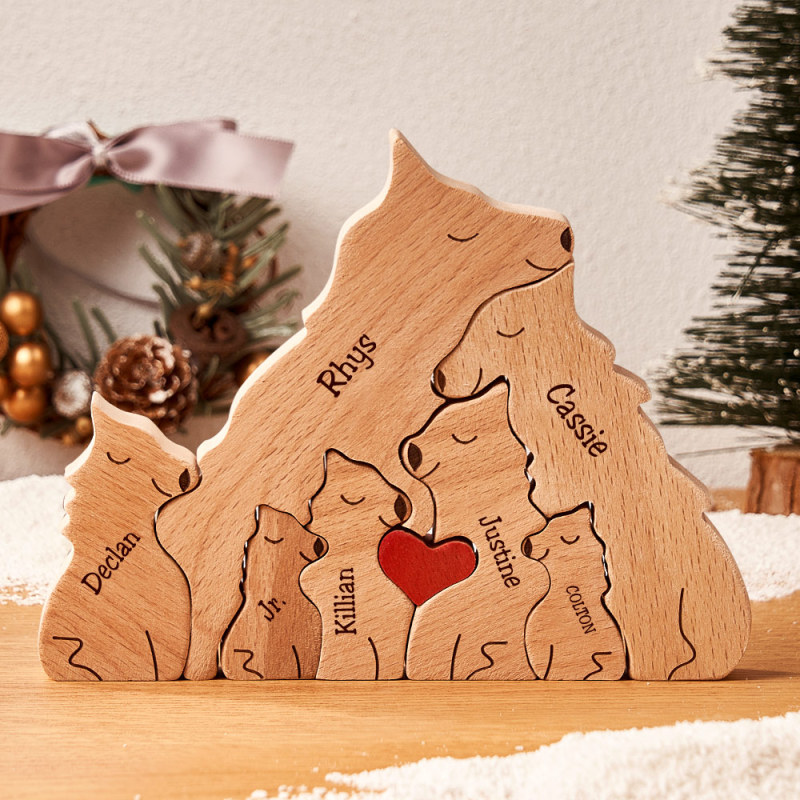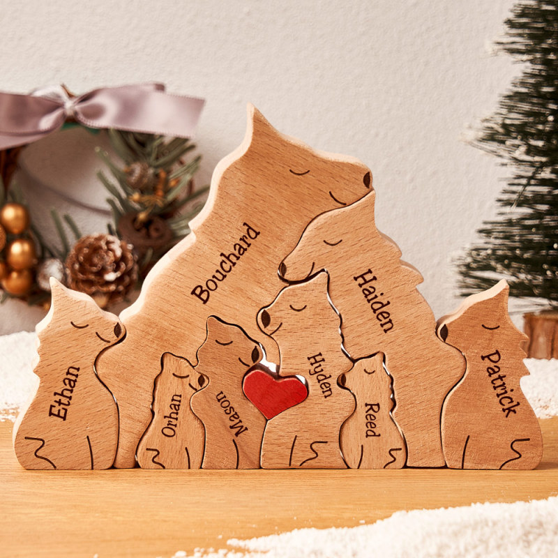 Benutzerdefinierte Namen Holz Wolf Familie Puzzle Home Decor Weihnachtsgeschenke