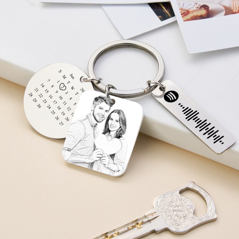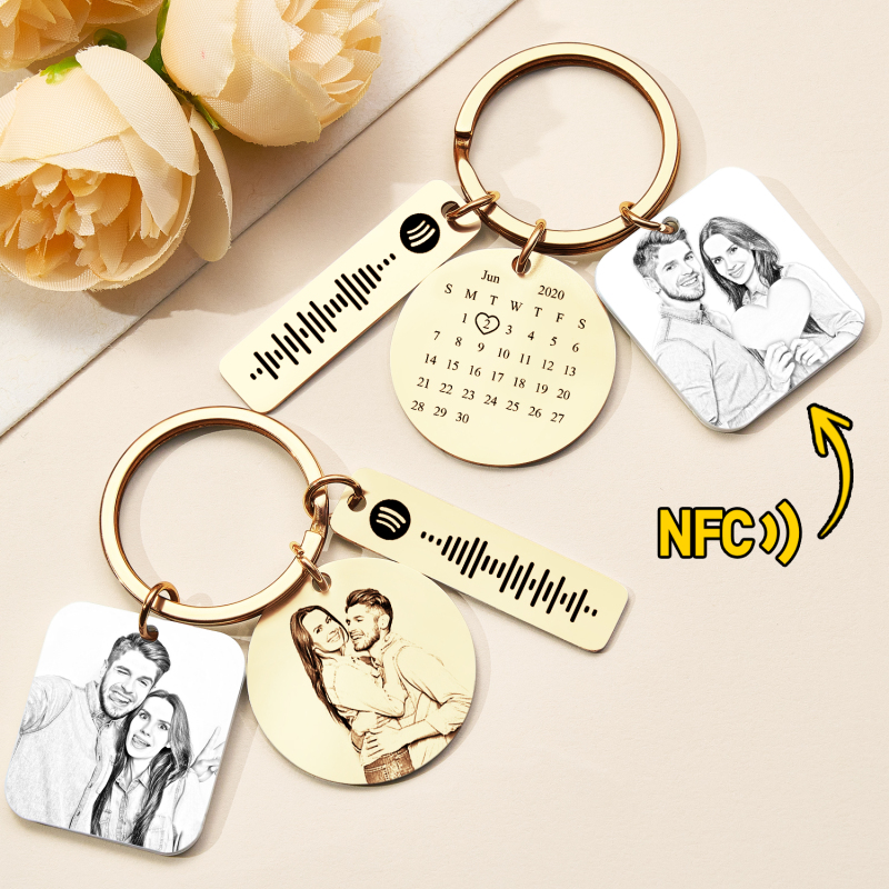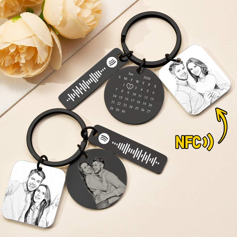 Wir präsentieren den personalisierten Fotokalender-Spotify-Schlüsselanhänger – ein einzigartiger NFC-Schlüsselanhänger, der Ihre persönlichen Erinnerungen mit Ihrer Lieblingsmusik verbindet. Dieses liebevolle Geschenk ermöglicht es Ihnen, ein Lieblingsfoto und ein individuelles Kalenderdesign anzubringen, während die integrierte Spotify-Funktion Ihre Musik sofort abspielt. Perfekt für Jubiläen, Geburtstage oder als kleine Aufmerksamkeit für Ihre Liebsten: Dieser elegante Schlüsselanhänger hält Ihre Erinnerungen und Ihre Musik immer griffbereit.Personalisiertes Design: Laden Sie ein Foto hoch und erstellen Sie ein individuelles Monatskalender-Layout.Spotify-Code scannen: Scannen Sie den QR-Code, um Spotify-Songs abzuspielen.NFC-Konnektivität: Der quadratische Acryl-Anhänger enthält einen NFC-Chip. Musik per Fingertipp freischalten.