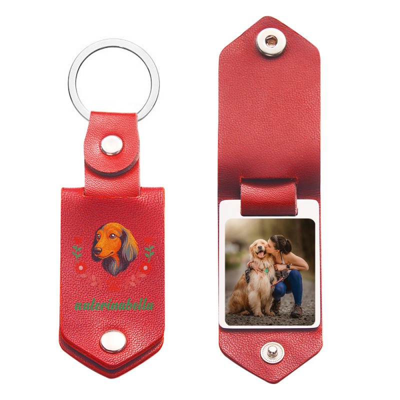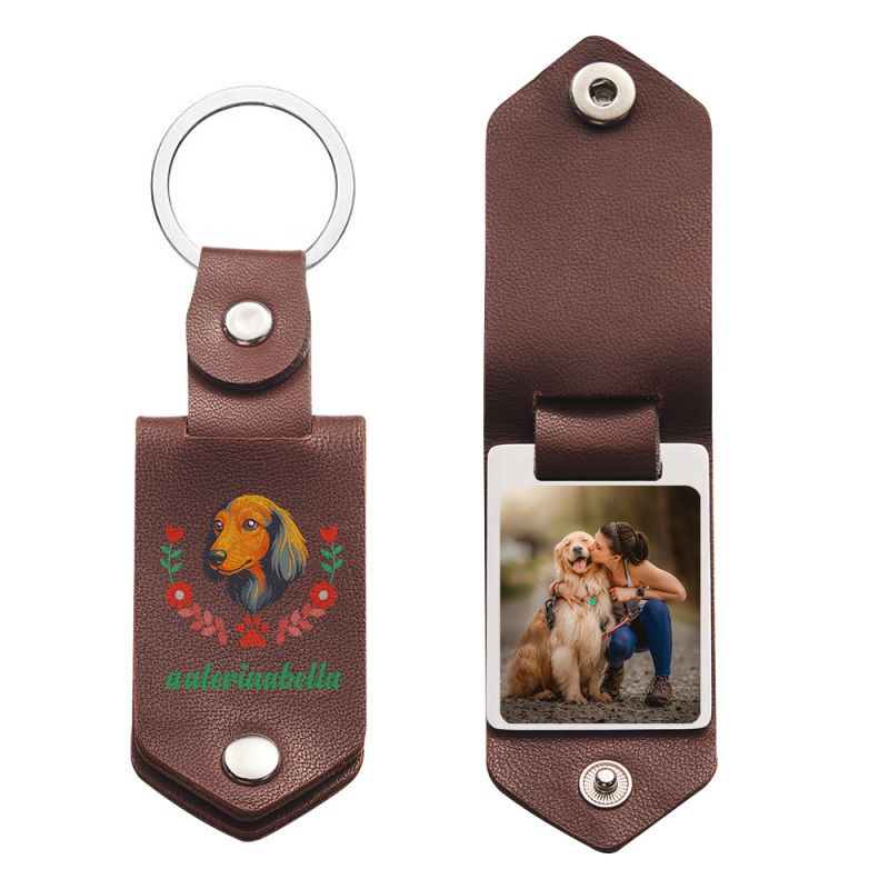 Tragen Sie die Erinnerung an Ihren vierbeinigen Freund in 4 eleganten Farben mit diesem handgefertigten Leder-Schlüsselanhänger mit einem detailreich gestickten Hundeporträt. Dieses 8 x 3 x 1 cm große Andenken ist in klassischem Rot, zeitlosem Schwarz, natürlichem Grün und warmem Braun erhältlich und passt perfekt zu Ihrem Stil.