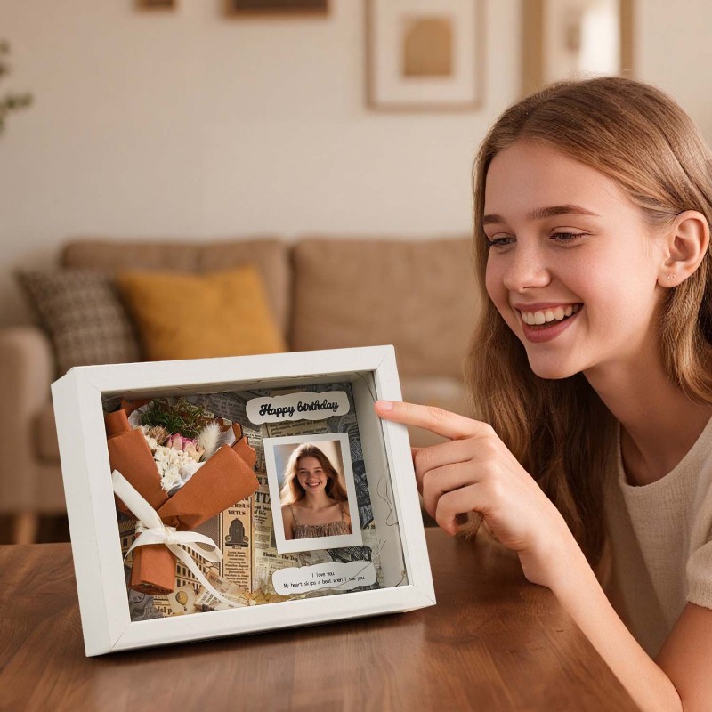 Halten Sie wertvolle Erinnerungen mit unseren individuellen Blumenstrauß-Fotorahmen und dem individuellen Foto-Nachtlicht fest. Dieses romantische Deko-Set vereint persönliche Kunstfertigkeit mit warmem, stimmungsvollem Licht und schafft so eine gefühlvolle Dekoration für jeden Raum. Der Blumenstraußrahmen fasst mehrere Fotos in einem blühenden Arrangement und ermöglicht es Ihnen, eine Geschichte von Liebe und besonderen Momenten zu erzählen. Das dazugehörige individuelle Foto-Nachtlicht wirft ein sanftes, schmeichelndes Licht, das Ihre Fotos hervorhebt und gleichzeitig eine gemütliche, intime Atmosphäre schafft. Dieses Duo eignet sich perfekt als aufmerksames Geschenk für sie und verleiht Schlafzimmern, Wohnzimmern oder Schreibtischen eine persönliche Note, die ausdrückt: „Du bist mir wichtig."