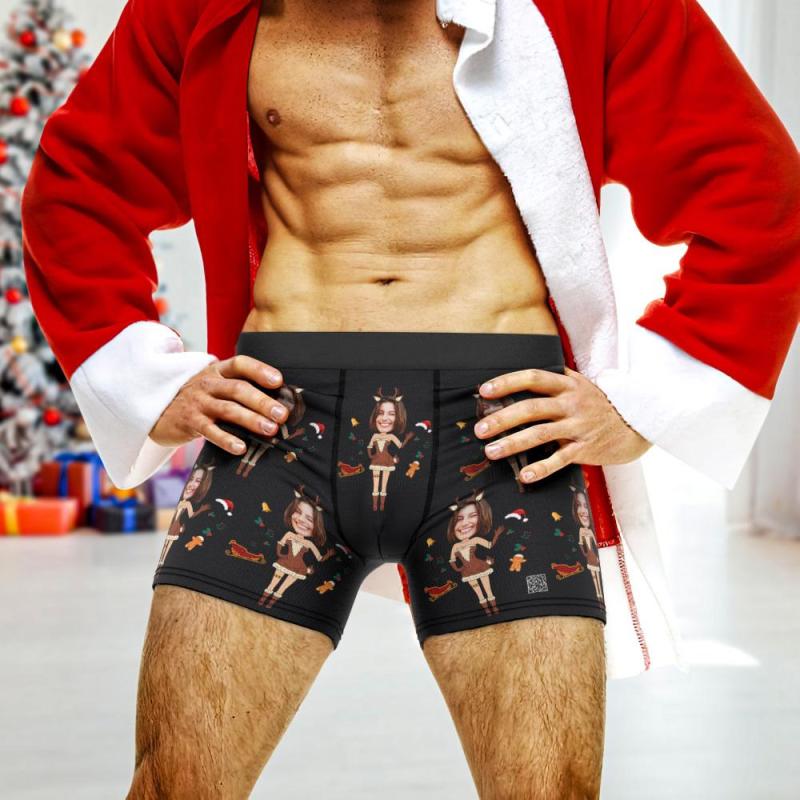 Kundenspezifisches Foto-boxer-weihnachtselch-gesichts-unterwäsche-herrenunterwäsche-paar-geschenke Weihnachtsgeschenk Ar-ansicht