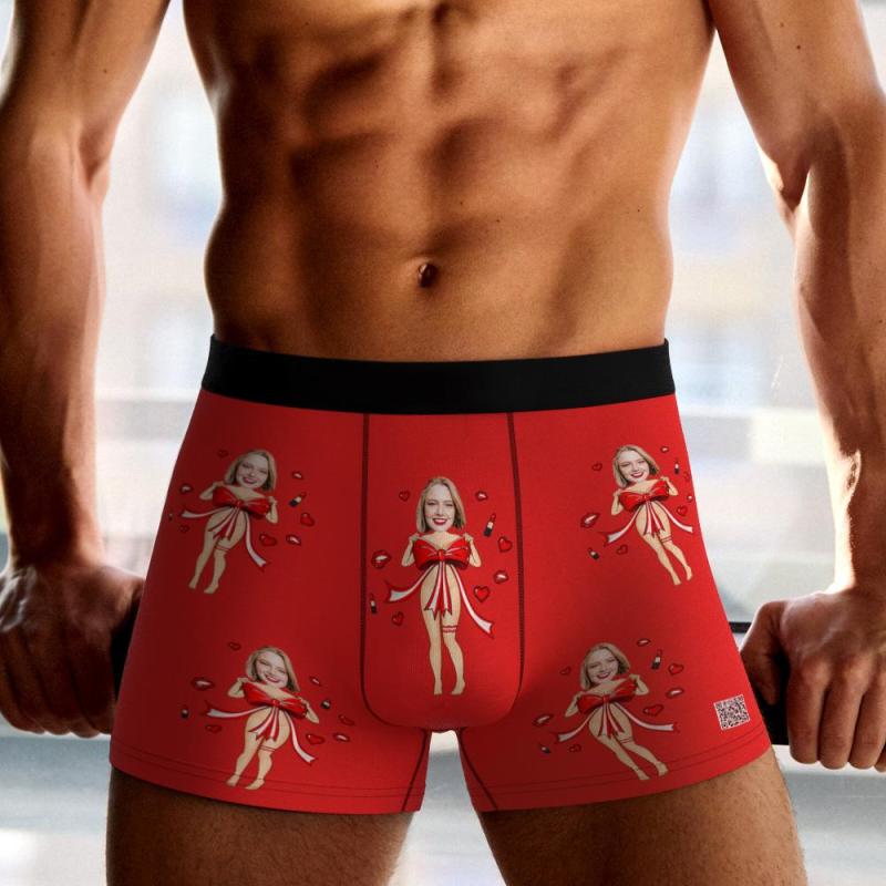 Kundenspezifisches Foto-boxer-roter Bogen-geschenk-unterwäsche-herrenunterwäsche-geschenk Für Freund Ar-ansicht-valentinstag-geschenk