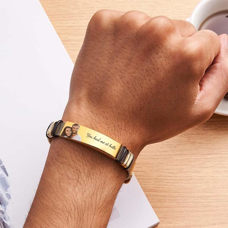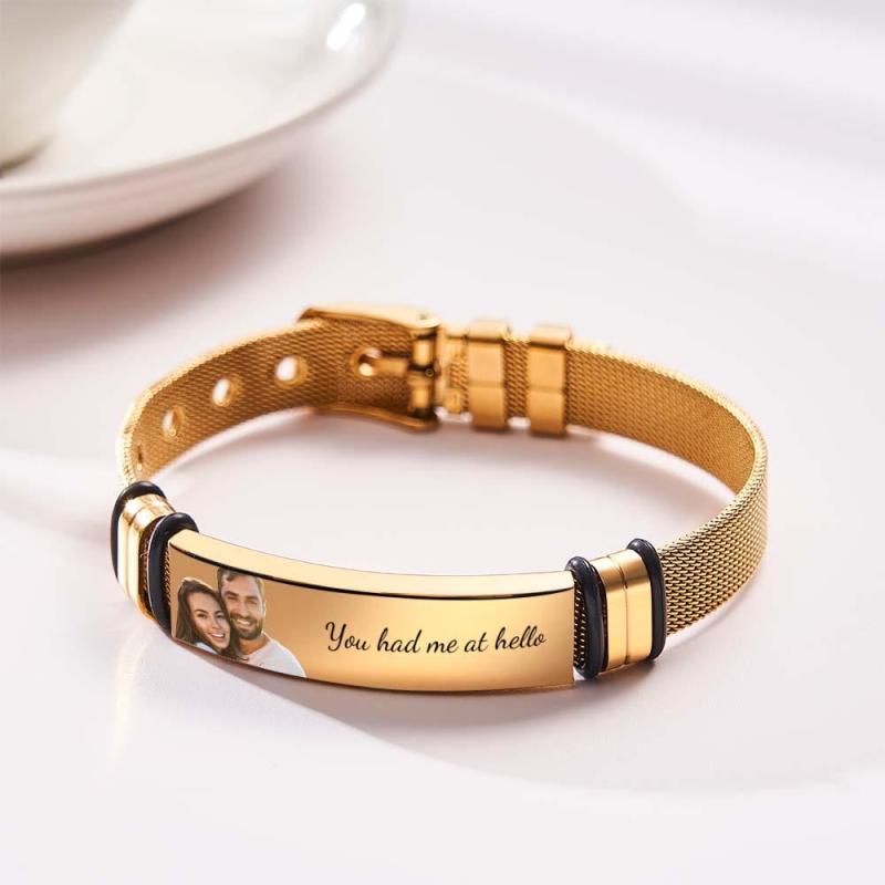 Personalisieren Sie das Armband, indem Sie Ihr Foto und eine besondere Botschaft darauf eingravieren, und verwandeln Sie es in ein unvergessliches Objekt.