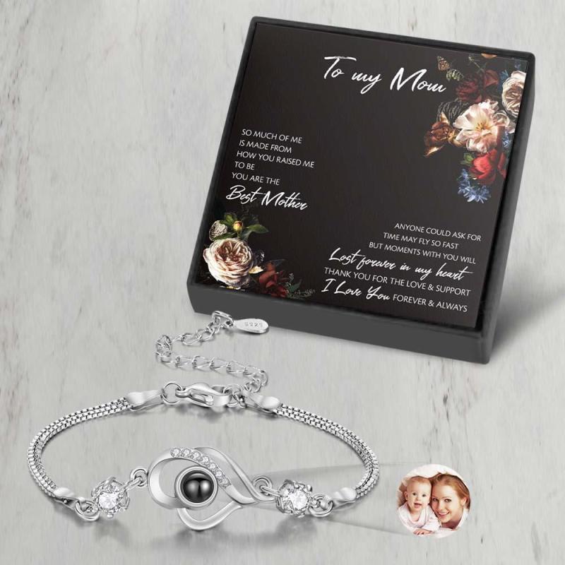 Dieses Armband kann Bilder werfen. Sie müssen nur die Fotos hochladen, die Ihnen gefallen, und wir werden sie sorgfältig erstellen. Dieses Armband ist mit überlappenden Herzen bedruckt und in zwei Farben erhältlich. Schönes Aussehen, leicht, sehr angenehm an der Hand zu tragen. Laden Sie ein Erinnerungsfoto auf das Armband hoch, um Ihnen dabei zu helfen, dieses Schöne zu bewahren und in Erinnerung zu behalten.