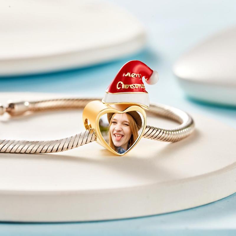 Kundenspezifischer Foto-charme-weihnachtshut Mit Herzförmigem Charme-geschenk Für Sie