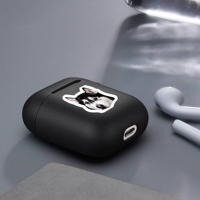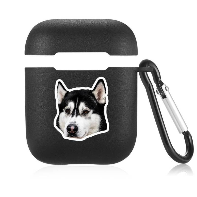 Kundenspezifische Foto Kopfhörer Hülle für AirPods Süßer Hund Schwarz - Gesicht
