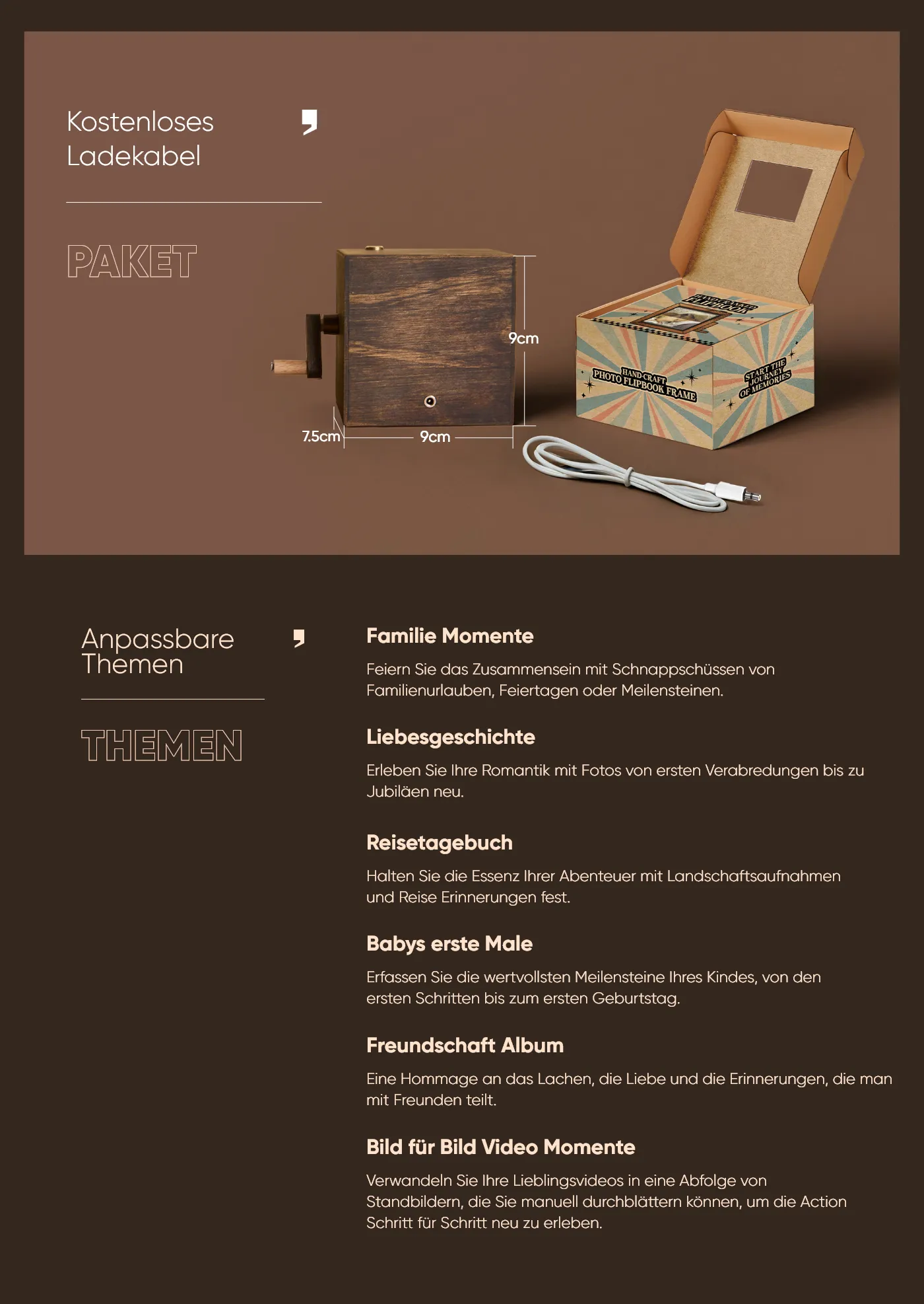 Dieses Fotoalbum verfügt über einen bezaubernden Handkurbelmechanismus und ermöglicht es Ihnen, wertvolle Erinnerungen auf ansprechende Weise noch einmal zu erleben. Die integrierte Beleuchtung sorgt für eine bezaubernde Atmosphäre und macht sie zu einem entzückenden Dekorationsstück für jedes Zuhause. Ganz gleich, ob es sich um einen Geburtstag, ein Familientreffen oder einfach nur um eine Hommage an die Abenteuer Ihrer Kinder handelt, dieses Album ist das perfekte Eltern-Kind-Geschenk, das die Bedeutung des Miteinanders unterstreicht.