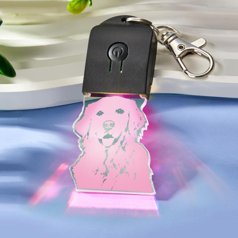 Der Schlüsselanhänger besteht aus klarem Acryl und verfügt über mehrfarbige LED-Leuchten. Personalisieren Sie ihn mit einem Lasergravierer. Das beste originelle Geschenk für Freundin oder Freund. Sehr nützliches Nachtlicht zum Öffnen von Türen oder zum Wegweisen im Dunkeln.
