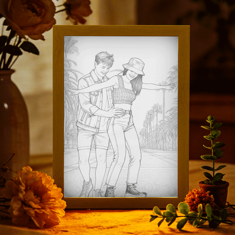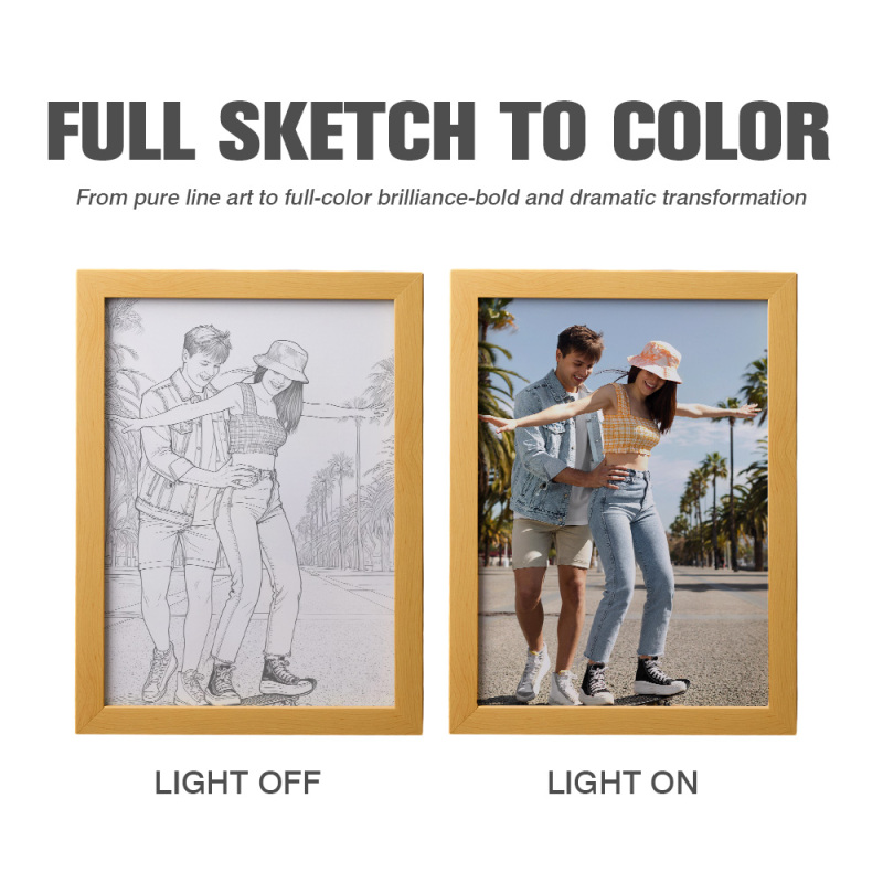 Verschönern Sie jeden Raum mit einem personalisierten LED-Lichtporträt – eine magische Kombination aus Bilderrahmen, Wandbild und stimmungsvoller Beleuchtung. Ein- und Ausschalten des Lichts erzeugen zwei völlig unterschiedliche Szenen. Genießen Sie die visuelle Überraschung beim Einschalten. Dieses personalisierte LED-Fotolicht verbindet Ihre schönsten Erinnerungen mit einem sanften, ganzjährigen Schein und verwandelt Ihr Lieblingsfoto in ein beeindruckendes Kunstwerk. Ideal als Nachtlicht, als einzigartiges Geschenk für Anime- und Kunstliebhaber oder als besonderes Highlight Ihrer Einrichtung.