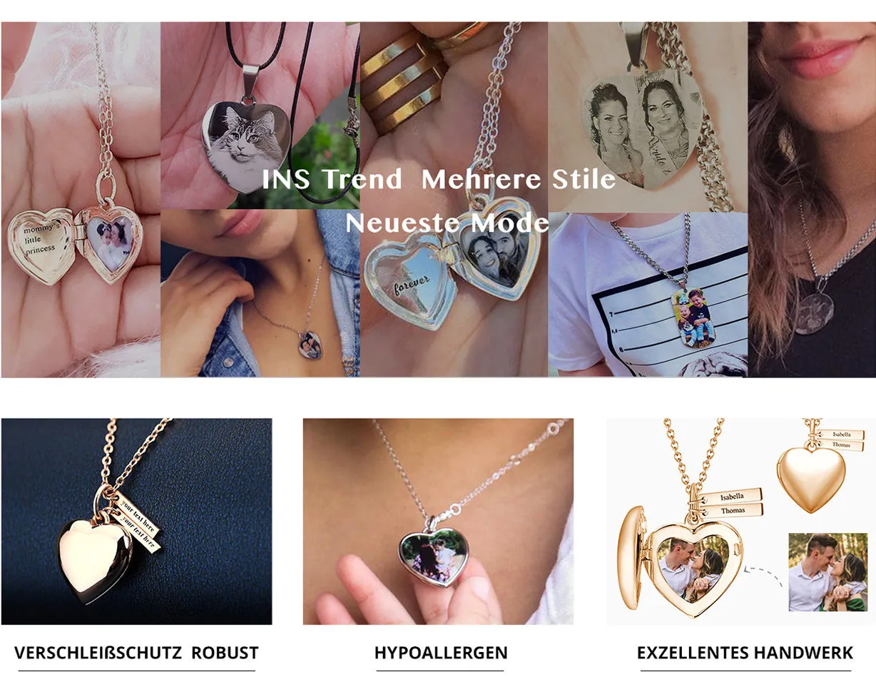 Gravierbare Foto Medaillon Halskette Personalisierte Herz Engel Flüge
