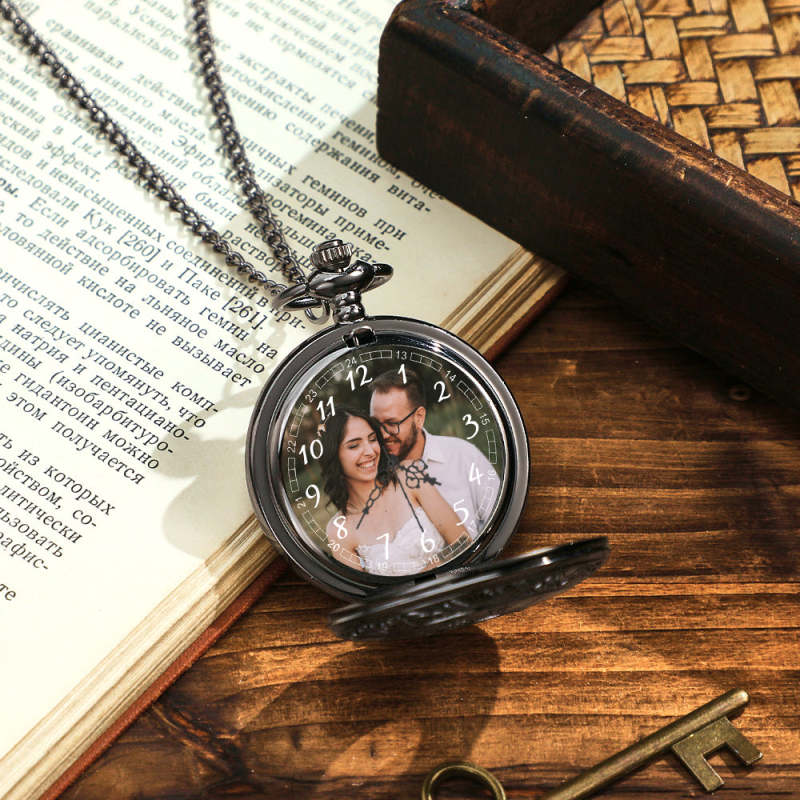 Taschenuhr Mit Individuellem Foto, Personalisiertes Taschenuhren-geschenk Mit Hohlmuster